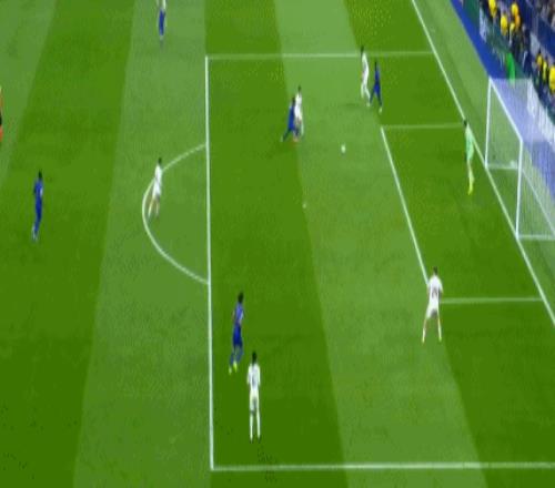 第31分钟,戈洛温左路突破横传,特泽离门30米外起脚兜射,直奔球门右上角而去,击中横梁弹出,皇马逃过一劫。