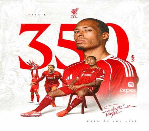 里程碑之战,范戴克迎来利物浦生涯第350次出场