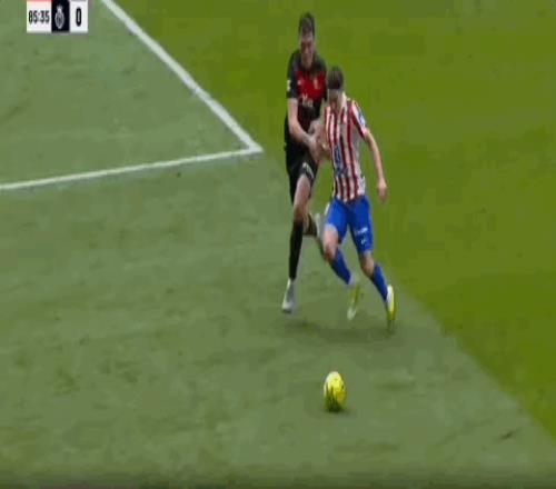 第83分钟,阿尔瓦雷斯倒地踩球过人,戴维-洛佩斯拉人犯规吃到黄牌