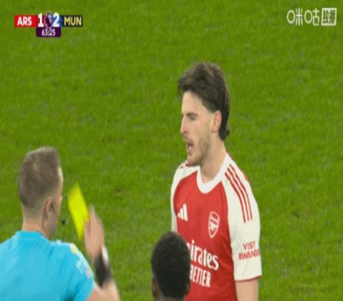 第63分钟,赖斯中场身后踢倒B费被黄牌警告。↓