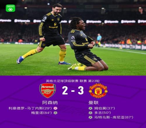 剑南春丨曼联32阿森纳,多古、库尼亚世界波,姆伯莫破门