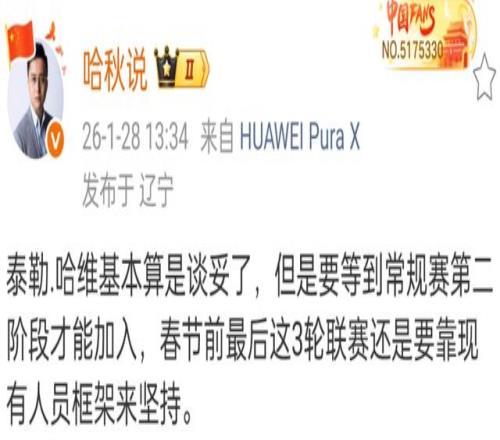 辽宁男篮补充强援!签约CBA旧将哈维,乌戈全力冲击前八