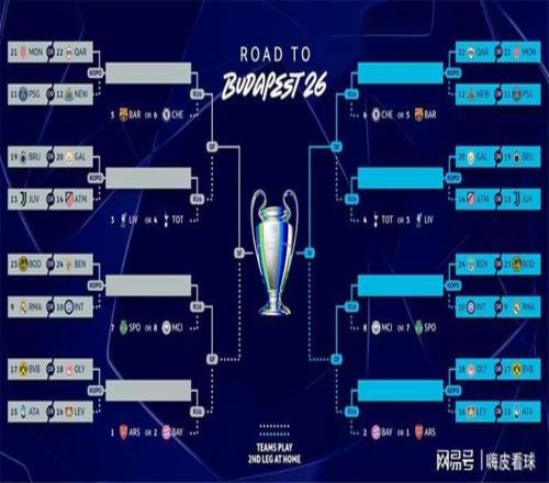 第一组,摩纳哥和卡拉巴赫,附加赛遇上巴黎圣日耳曼或者纽卡斯尔,两个胜者,将在16强面对巴塞罗那或者切尔西,最终产生2个八强席位。这个对阵,对应着上面淘汰赛对阵图的左上角。